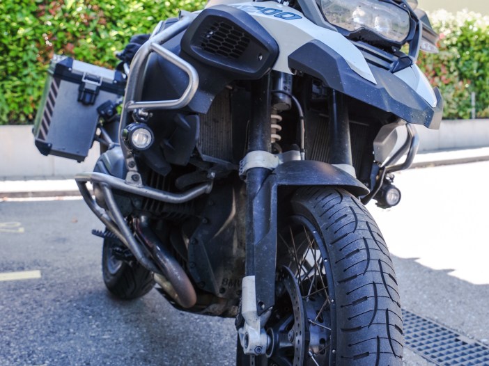 L’équipement également a parfaitement joué son rôle, notamment au niveau de l’étanchéité : merci à Touratech pour la moto (selle pilote, saccoche réservoir, sac de selle arrière, sac de porte-bagage) et le casque, à Held pour la veste moto et son coupe-vent pluie, à Richa pour la combinaison pluie et à Alpinstar pour les bottes.