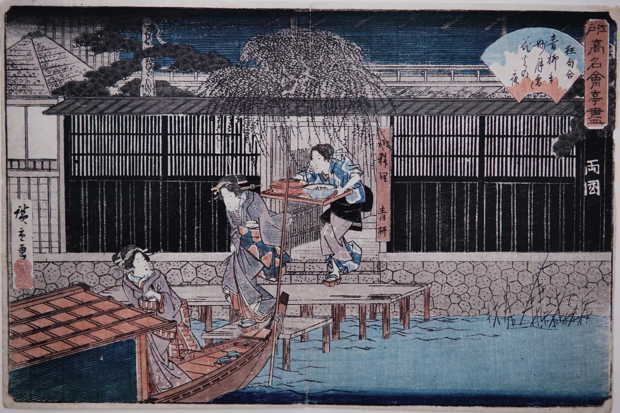 Utagawa Hiroshige (1797-1858), Le Restaurant Aoyagi à Ryogoku, planche de la série Restaurants célèbres d’Edo, vers 1838-1840, gravure sur bois, 239 x 357 mm. Photographie : © Lyonel Kaufmann 2025