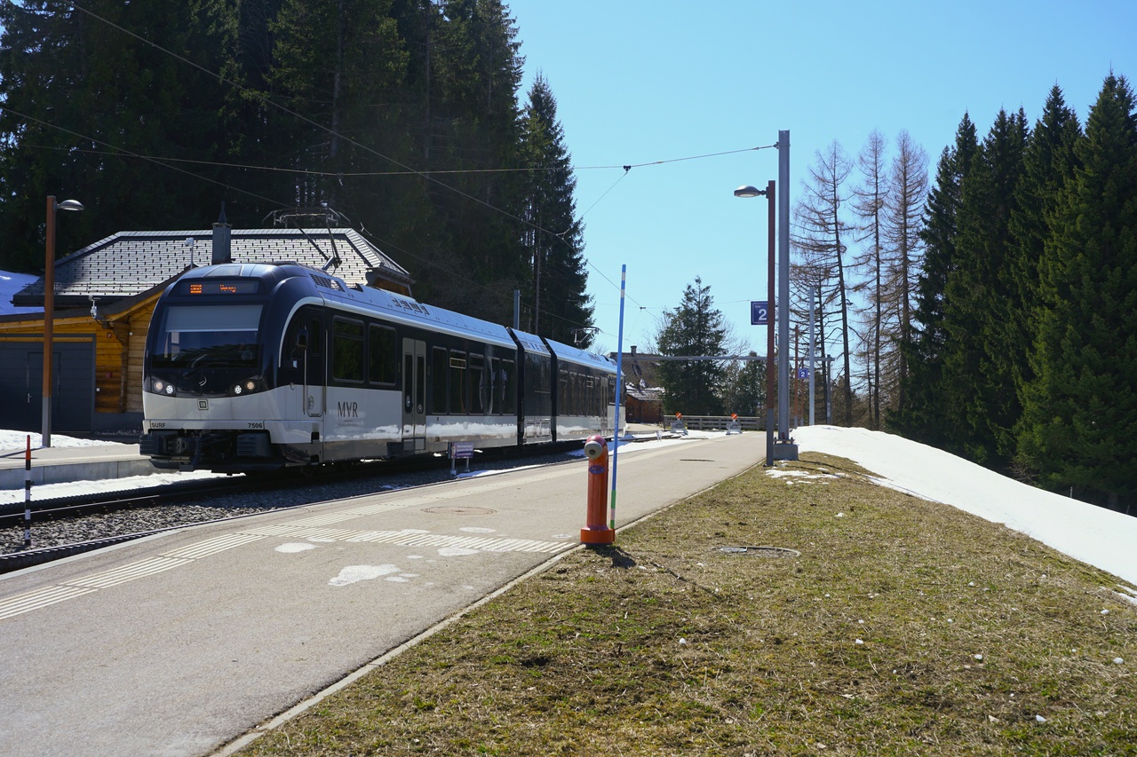 Nous profitons de la nouvelle ligne de bus qui, désormais, passe devant chez nous et monte jusqu’à la gare de Blonay pour prendre ensuite le train jusqu’au Pléiades.